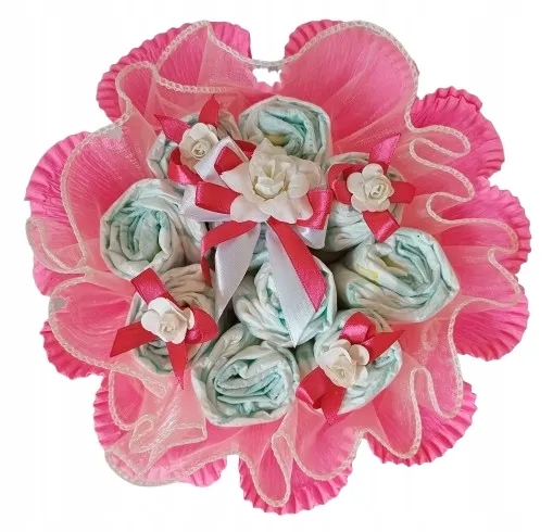 - Bukiet z pampersów to idealny prezent na baby shower, urodziny noworodka lub chrzciny.